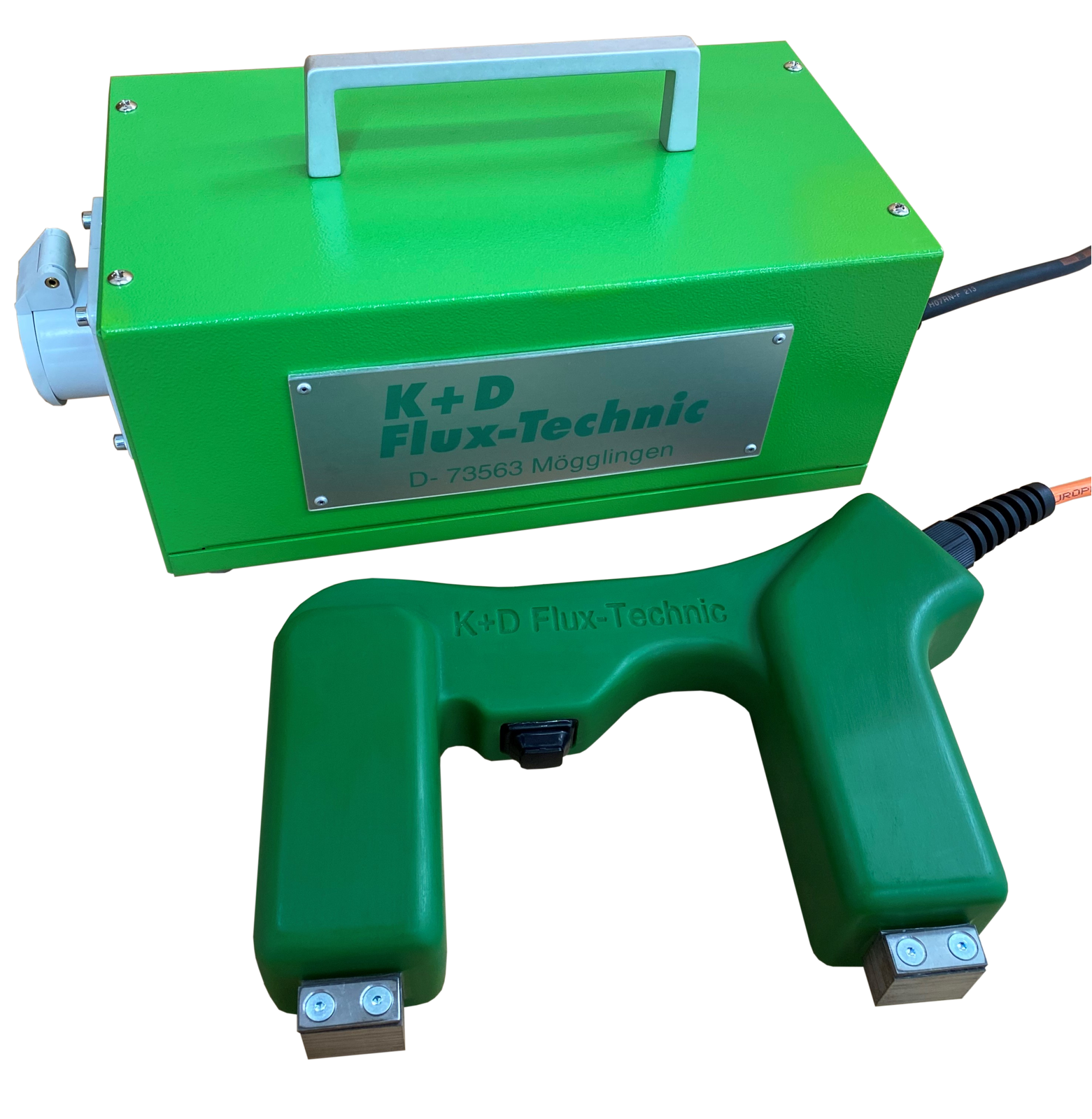 Bei der Magnetpulverprüfung wird ein magnetisches Feld erzeugt, indem ein Magnet oder eine elektrische Spule verwendet wird, um das zu prüfende Werkstück zu magnetisieren. Anschließend wird feines magnetisierbares Pulver auf die Oberfläche des Werkstücks aufgetragen. Wenn sich in der Nähe der Oberfläche Risse, Schweißnähte oder andere Defekte befinden, wird das Pulver durch die magnetischen Feldlinien angezogen und bildet eine Linie oder Ansammlung von Partikeln, die den Verlauf des Defekts anzeigen.
