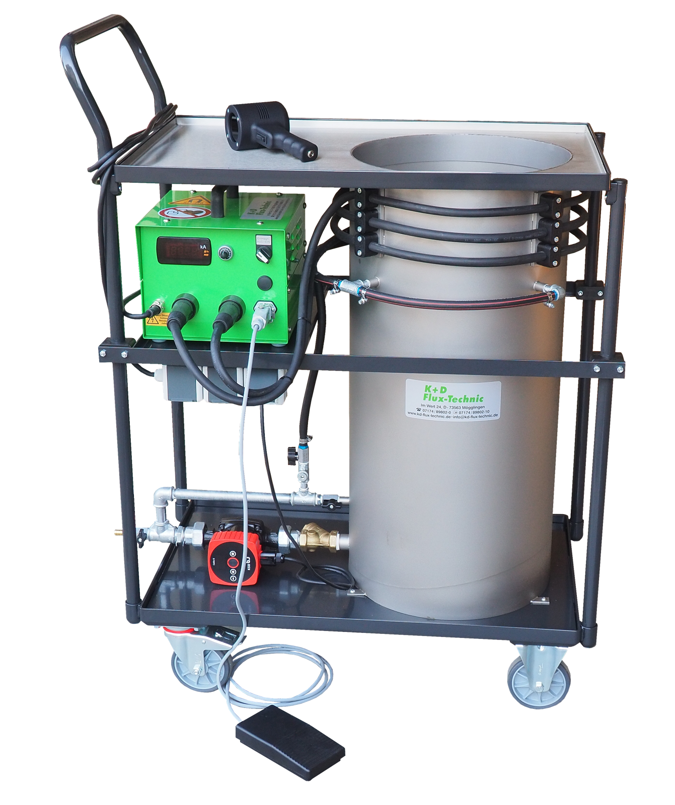 - Ringdusche mit 4 x 90° versetzten Sprühdüsen unterhalb der Hochstromspule eingebaut