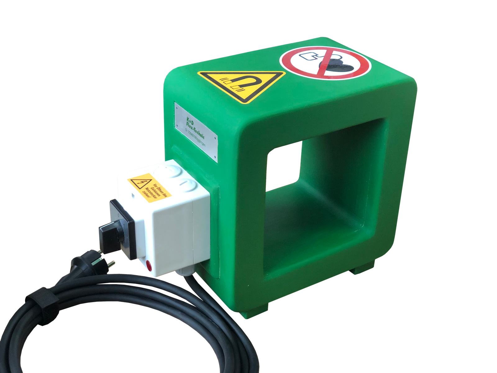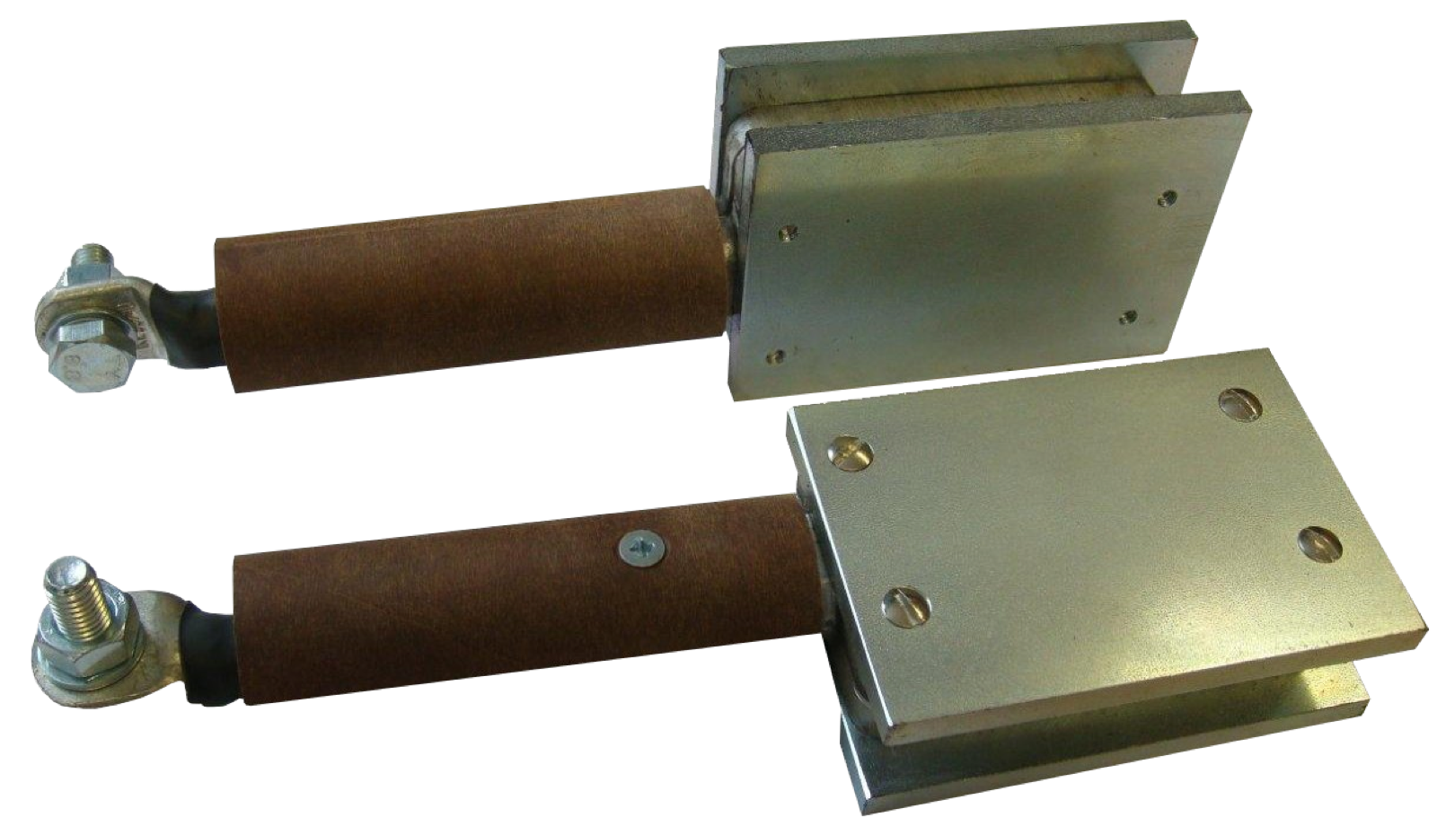 Magnetelektroden I werden zusammen mit einem Hochstromerzeuger (z. B. Portaflux 1000) oder in Prüfbänken eingesetzt, um den Prüfstrom zuverlässig auf das Bauteil zu übertragen.