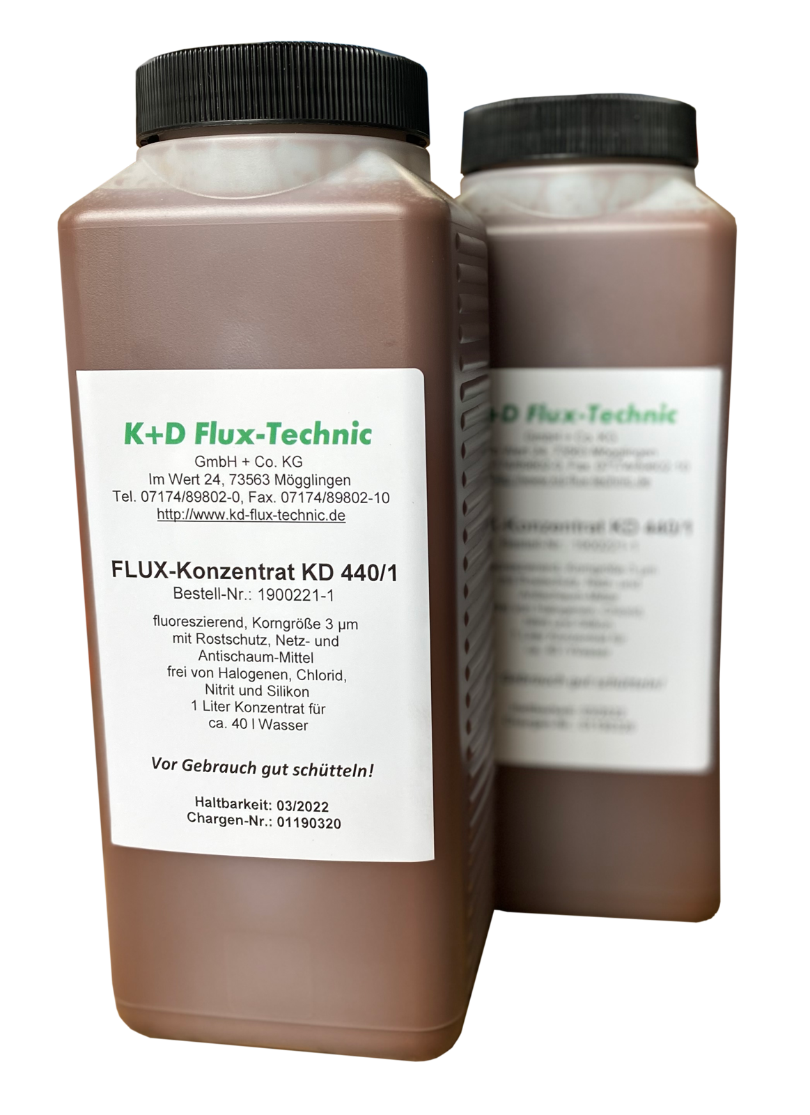 Die wasserbasierten fluoreszierenden Prüfmittel (gelbgrün, 535 nm) sind für die Magnetpulverprüfung (MPI) von ferromagnetischen Werkstoffen optimiert: